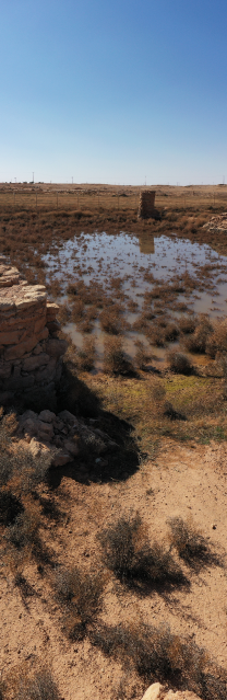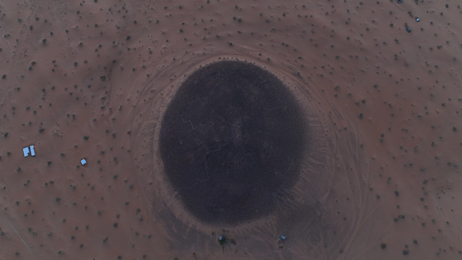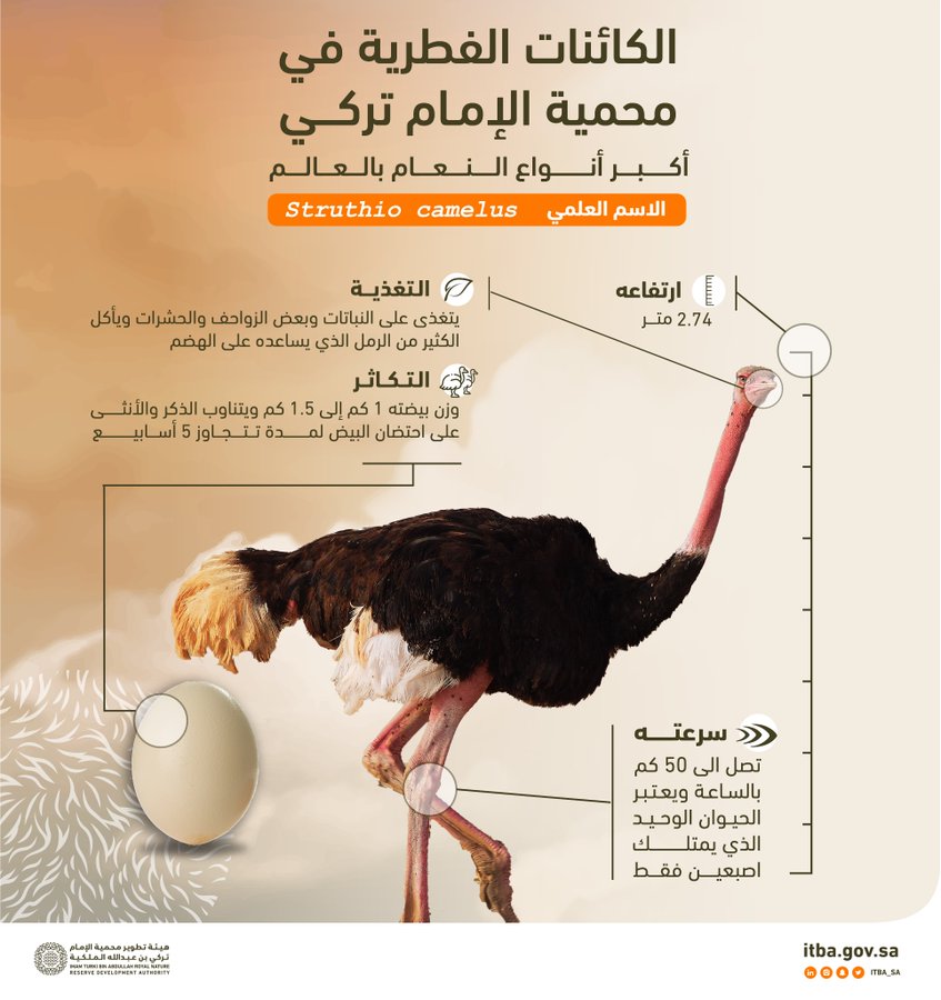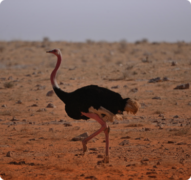برقبتها الحمراء، وريشها الأسود تكتمل لوحة الصحراء الجميلة.