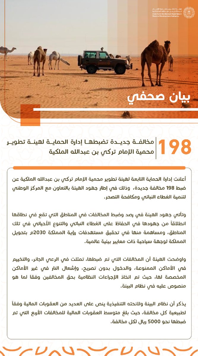 تأسست هيئة تطوير محمية الإمام تركي بن عبدالله الملكية بموجب أمر ملكي في عام ٢٠١٨م ، حفاظاً على بيئة طبيعية ونباتية مزدهرة وحياة فطرية سليمة ومستدامة، كما جاء هذا الأمر سعيًا لتنشيط السياحة البيئية، وحدًا من الصيد والرعي الجائر ومنع الاحتطاب.